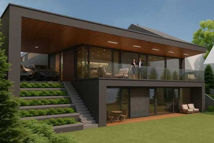 A plot is for sale in a private settlement, near the city court. A building permit has been obtained for 2 a three-story house with a pool.