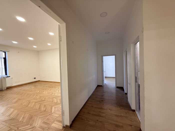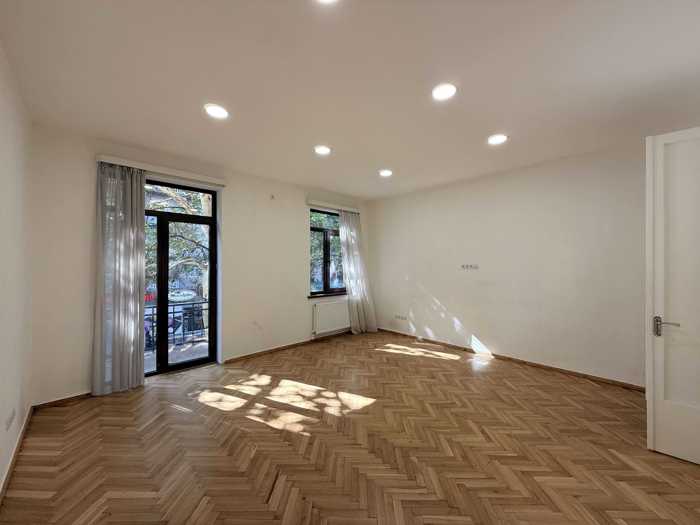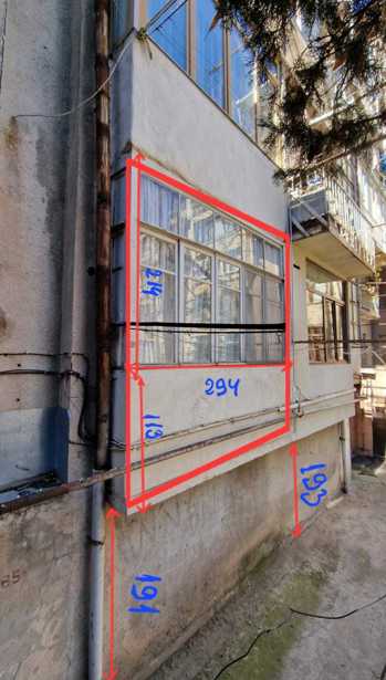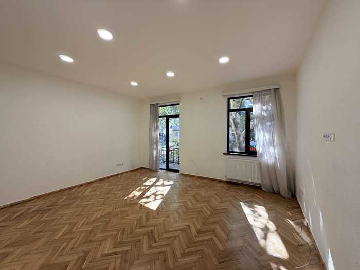 Agencies, please do not call me!! I am selling an apartment on the first floor of a building on Abashidze Street, next to Lika's cakes, in the ventral valley whose windows overlook the side street. The apartment is for sale for both residential and commercial purposes. Area: 64 sq.m + 4 sq.m basement. Total 68 m². The area has the following layout: it is divided by two load-bearing walls, which allows for the removal and/or designing of rooms and partitions on the left side of the area. There are two main spacious areas displayed as follows: 34.65 m² and 20.66 m² + 8.05 m² a vaulted space that looks into the inner yard. The basement/storage space (4.38 m²) is located under the 14.02 m² room of the apartment. Currently, permission has been obtained to cut the glazing on the facade and for the staircase.