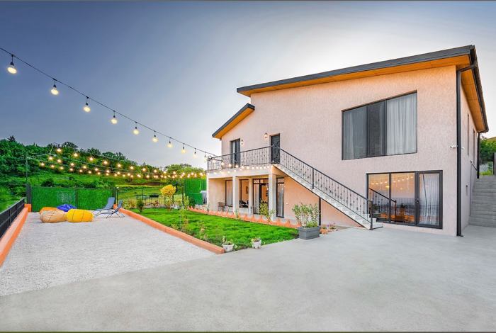 For sale is a 400 sq.m. two-story house located in the village of Digomi, in a quiet, green, and ecologically clean environment. It is a unique space for those who wish for comfortable living, a yard full of greenery, and additional opportunities for both residential and commercial purposes. The house features large, open verandas and a modern central heating system. An inseparable part of it is a beautiful, green garden of 900 sq.m., generously filled with perennial trees, various grape varieties, and fruits. The garden's special color is enhanced by a collection of roses and a variety of decorative flowers. The interior space includes four comfortable bedrooms, two living rooms, two wet areas, a kitchen supplied with clean water and 24-hour gas service, and all necessary conditions for relaxation and domestic needs. Additionally, the house has a wine cellar, a fireplace, and a billiard room, which gives the house a special charm. The parking area is located in the yard and is designed for several vehicles. This property is ideal not only for a family but also as an investment opportunity: the house has great potential to operate as a family-type hotel with wine cellar or for other commercial purposes. The village of Digomi has recently become an increasingly popular and desirable location for living in the outskirts of Tbilisi. Its advantages are numerous in terms of both environment and infrastructure and quality of life: the village of Digomi is characterized by clean air and greenery. There is less city noise, emissions, and dense construction here, which is a prerequisite for a healthy and peaceful life. Digomi is ideal for families; it has a safe environment, making it an attractive place for parents to raise children. The number of educational, commercial, and medical facilities is increasing. Schools, kindergartens, supermarkets, and clinics are nearby. Houses and plots in the village of Digomi are often used for residential as well as commercial activities, such as family-type hotels, dining facilities, or recreational purposes. This is a place where tranquility, nature, and opportunities harmoniously blend together.