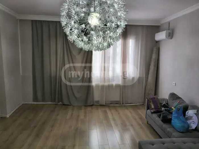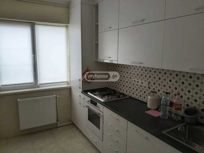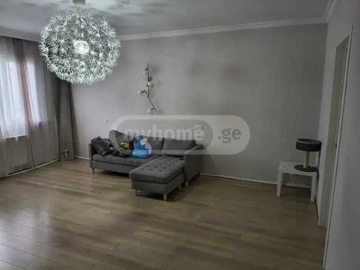 For sale: renovated apartment in Vazisubani 1st microdistrict. Top floor, the roof has been recently covered with tiles. The facade on the loggia side is plastered, treated, and painted with special paint. It comes with a sofa, a television, furniture for one bedroom, air conditioning in the living room, kitchen furniture and appliances, a table, and chairs. With central heating.