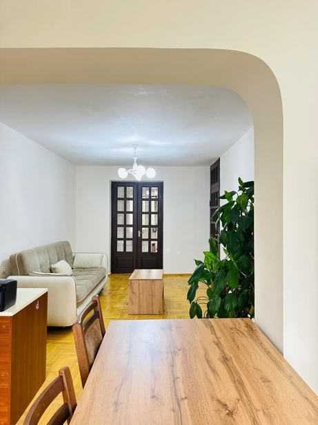 It is on a quiet street, in a good location, a 15-minute walk from the "Isani" or "300 Aragveli" metro, with Euro windows, gas, 2 bathrooms, equipped with appliances and furniture, call me at this number: Tel. +995593731538, WhatsApp. +37493326166