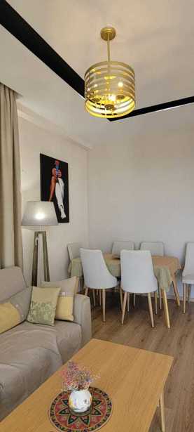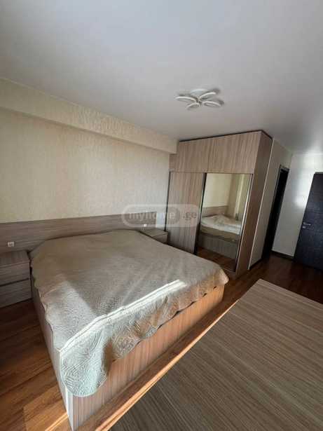An apartment is for rent, with 2 bedrooms and a studio-type living room, fully equipped with necessary inventory, has access to the balcony from every room and has a rather large balcony, has 2 bathrooms and one bedroom has its own wardrobe. The building has a yard, it is rented for a period of 1 year. It also includes closed parking.