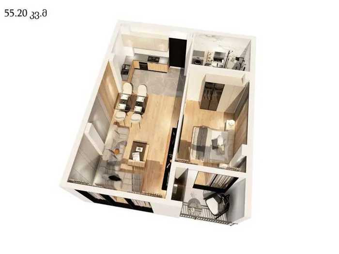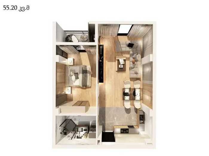 For sale, a 54.4 m² apartment in Tbilisi, at the 4th turn of Tsatskhvebi Street in a newly built delivered building. The apartment is uninhabited and ideal for both living and investment. The location provides tranquility, clean air, and easy access to the city center, making it attractive for those who want to combine the city's dynamics and a cozy environment. The apartment is fully furnished with furniture and appliances.