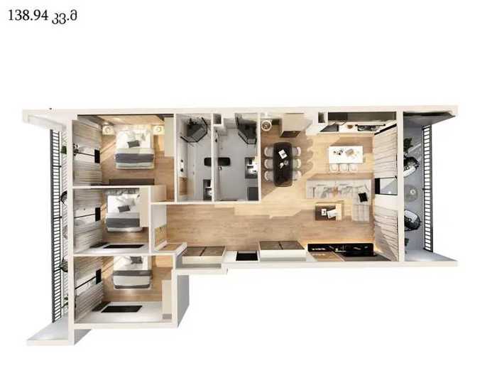 Apartment for sale, 117 sq.m, 4 rooms, 3 bedrooms, green frame, 1 parking space in the yard.599438608