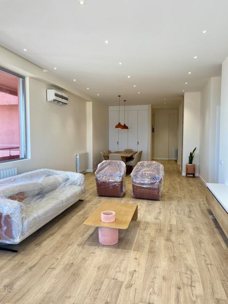 Newly renovated luxury apartment in a Ricardo Bofill–designed building, located in Lisi Green Town. The apartment features two spacious bedrooms, two bathrooms, a dressing room, a home office, a large separate kitchen, and an exceptionally generous living area. It is furnished with top-quality Italian/Spanish furniture and equipped with Bosch appliances throughout. The apartment area measures 131 sqm and is complemented by an additional 9 sqm exclusive-use balcony. The apartment has a well functioning layout and 3,2 meter ceilings. The living area has large panoramic windows with beautiful city views. The renovation has been meticulously done with the highest quality European construction materials. Underground parking and a storage room are also available for separate purchase.