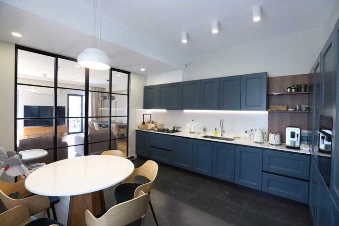 Within walking distance from the Millennium and British schools, Lisi lake area, for the first time rented, a 3-room brand new, recently finished apartment (88 sq.m.) with its private 135 sq.m. yard/garden. The apartment is located on the second floor of a 3-storey downtown style building in the neighbourhood of private houses. The terrasse and garden are directly accessible from the 36 sq.m. living area. 1 of the 2 bedrooms is a master bedroom. Both bedrooms have a balcony. The apartment is equipped with tiled bathroom and shower room, 3 air conditioners, 2 built-in wardrobes. The central gaz heating system is controlled from the living room via a thermostat. The kitchen is fully furnished and equipped (induction electric cooking plate, oven, dish washer, silent washing machine, modern fridge), bathroom double sink, lawnmower. Lisi Lake is at 10 minutes walking distance. Nutsubidze 4th Plateau is at 10 minutes walking distance. Immediately available. The deposit is required.