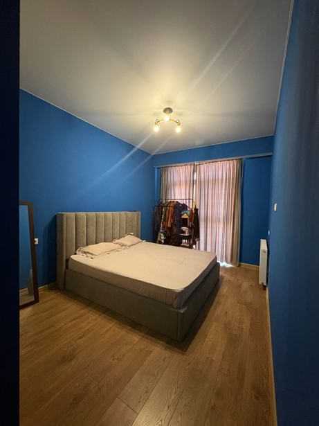 A newly renovated bright apartment is for rent near the Samgori metro station in a prestigious secured building (near the SHSH settlement) with a secured entrance and yard. The apartment has two fully furnished bedrooms and all necessary furniture and new appliances. Each room has a balcony (one French). The entrance is equipped with cameras (currently, all residents' cars are parked in the yard).
