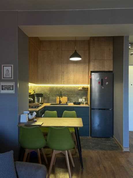 For rent: newly renovated bright apartment near Samgori metro station in a prestigious secured building (near the Ministry of Internal Affairs neighborhood) with a secured entrance and yard. The apartment is fully furnished with two bedrooms and all necessary furniture and new appliances. Each room has a balcony (one French). The entrance is equipped with cameras (currently, parking for all residents' cars is available in the yard).