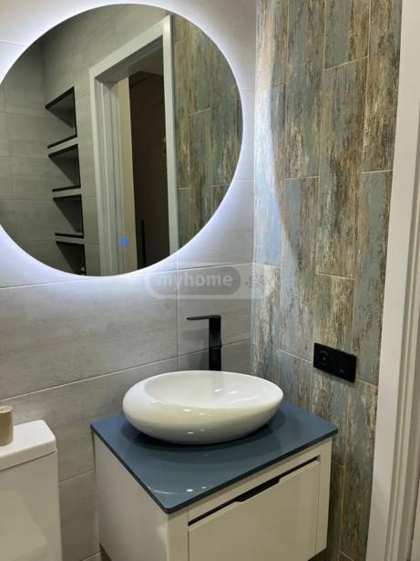 For sale apartment at 142 Grigol Lortkipanidze, 56 sq.m. studio type renovated with one large bedroom, but it is possible to divide it into two bedrooms with natural light. Everything remains except for the appliances. On the first floor of the building, there are 3 network stores - Magnit, Chamomile, two steps away. Municipal transport routes 4 operate nearby, including 2 minibuses and buses with several stops.