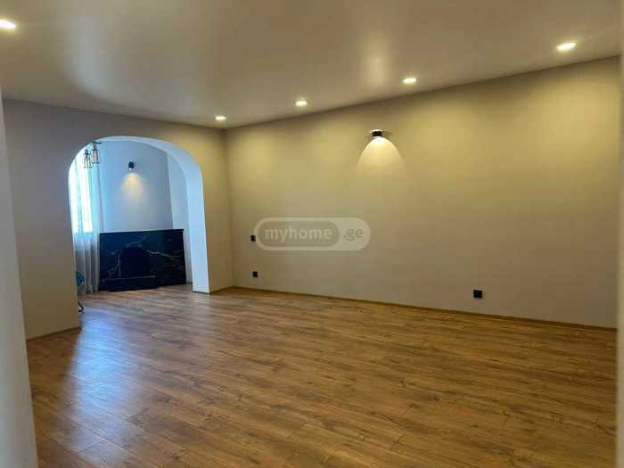 For sale, a 3-room apartment with 2 bedrooms. In Varketili, Alexidze Street, Varketili 3 M/R. 15/15 floor, 89 square meters. It has a balcony, central heating. Bright, sunny apartment with a fireplace. With a built-in kitchen. Tukhareli project.