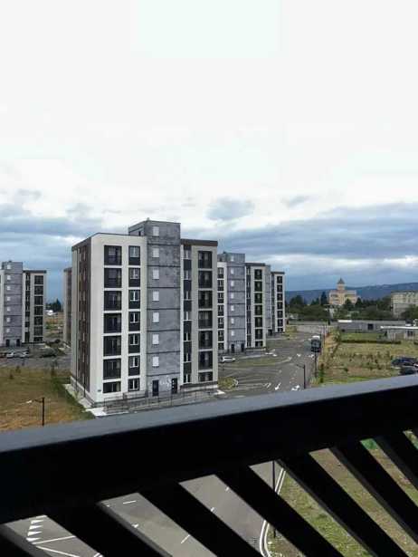The building at the military city of Makhatta is Corps 2. At the main entrance. On the 7th floor, I am on the 5th floor. The building has one entrance. 110 sq.m. The project is designed for three bedrooms. Two bathrooms. 2 balconies. 10 sq.m of basement. The basement doors and finishing are included in the total project for up to 1000 Lari. Yard lighting is free, cleaning is free. Parking is free for one vehicle. 'This is how it is in every military city' is served by the city hall in Varketili as well. The entrance halls are finished. There are 2 passenger elevators and 1 freight elevator in the building. Video surveillance. There is a cleaner for the building. All of this costs 130 Lari per month.