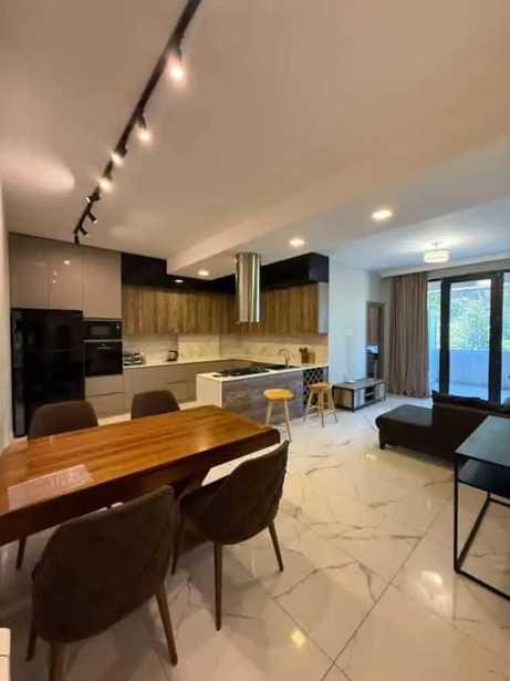 An apartment is for rent in a newly built, non-standard project. The apartment is located on the second floor of a four-story building and has an area of 100 sq.m. The apartment has one bedroom and two rooms, which provide a comfortable and cozy environment. The apartment does not have a balcony or loggia, which creates a more closed and quiet atmosphere. The newly renovated condition and modern standards are ideal for those who value cleanliness and novelty. The space is designed for those who want to live in a calm and orderly environment.