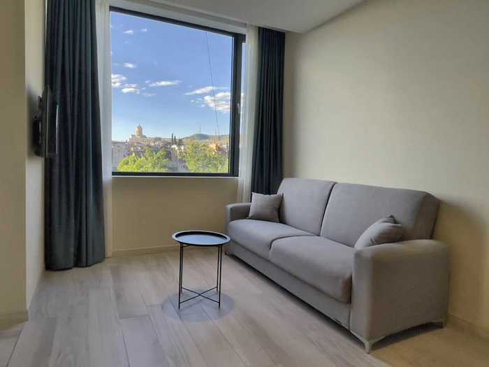 |I'm the owner. Please call via WhatsApp only. Ioseb Grishashvili street 49, Abanotubani's historic center, the only modern building, a 5-minute walk to the sulfur baths and botanical garden, very quiet, free parking. Opposite the SHERATON, you can hear the bells of the Holy Trinity Cathedral ringing in the morning. Long-term rentals no longer yield 10% or 5%. Only tourist locations like Abanotubani, and short-term rentals with a real ROI of 10% and a price of $110-120 per night (for 9 guests). We have our own shop in the building. Beautiful entrance and free elevator. We are converting the balconies into a large terrace with private access to the enclosed courtyard. GHROE sanitary, new boiler, air conditioners in every room, panoramic floor-to-ceiling windows, 2.85 ceiling height. Free elevator, expensively finished entrance with video surveillance. Furniture and appliances will remain, ready for daily rent. 200 meters away is a large park with the Kura River embankment, a church, and the "Intellect" school. The underground parking lot's upper level is completely empty (but the car lift is broken). No encumbrances, full price in the contract.