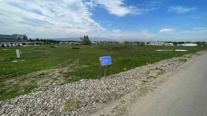 Commercial land plot for sale near Tbilisi International Airport by the roadside, not agricultural construction.