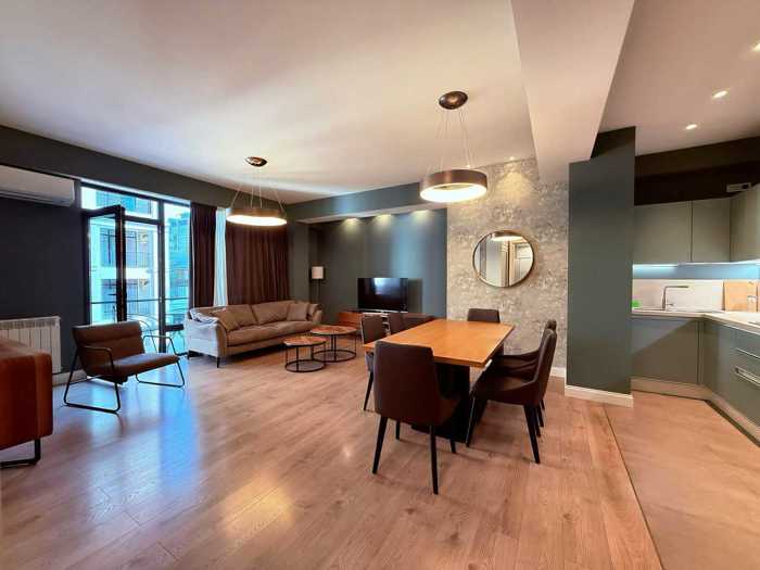 Apartment for rent in Paliashvili, near Vaki Park, in a newly built building. The apartment has 4 rooms with 3 bedrooms, one of which is a master bedroom (with its own bathroom and dressing room). The apartment is equipped with high-quality furniture and appliances, has a dishwasher. The apartment has the best corner layout, which provides natural light in all rooms and good ventilation. The building is served by 24-hour security. It has underground parking. The apartment has a smart system that is managed through a mobile application, which allows us to remotely control: central heating, lighting, curtains. The door lock is multifunctional and convenient, it can be opened with both a fingerprint and a code. There are additional security detectors and video surveillance.