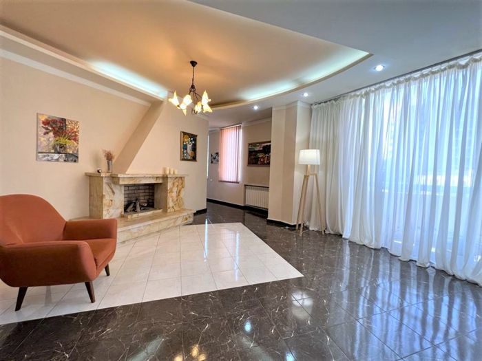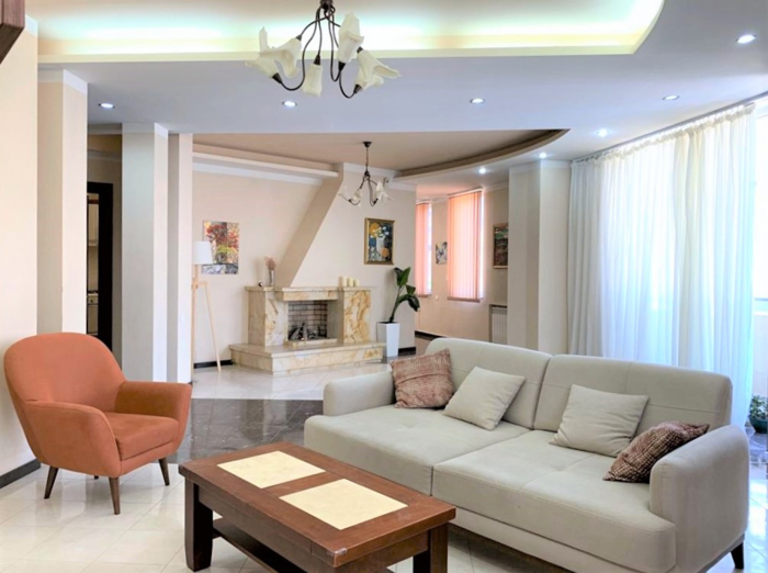 5-room, 172 sq.m. flat in Vake for sale. Hall, large living room, isolated kitchen, 4 bedrooms, 2 bathrooms, 2 balconies. The apartment has a well-furnished, green yard of 150 sq.m., a square in front of the house. Also a 3 car garage and 2 basements. (currently rented as an office).