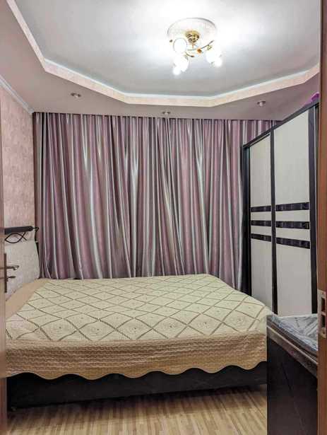 The apartment is located in Tbilisi, specifically in Gldani (4th micro district). The apartment has old renovation, but it is clean. It is ideal for a large family.