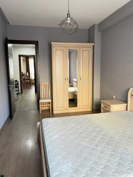 For rent is a newly constructed, non-standard project apartment with an area of 87 sq.m., located on the 4th floor of a 9-story building. The apartment has 3 rooms, including 2 bedrooms and one living room. It has one balcony where you can enjoy your free time. The interior features a modern bathroom with tiles, a laundry room, and a fully equipped kitchen. The bedrooms are bright and cozy, and the living room is ideal for family gatherings. The apartment also has a terrace that offers additional comfort and tranquility. The new environment and modern design create a unique atmosphere.