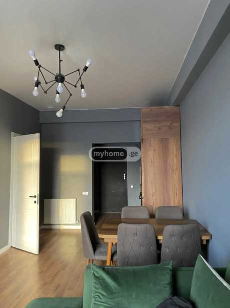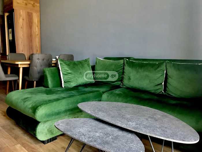 2-room apartment for rent in Nazolé, 45 sq.m. on Eristhavi Street in a newly built block with Euro renovation, central heating, furnished with furniture and appliances. Price 450$.