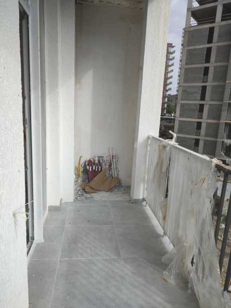 The apartment is newly built. It has 3 rooms, 2 bedrooms, and 1 studio. White frame. Electricity is connected. There are 2 bathrooms. There is a balcony.