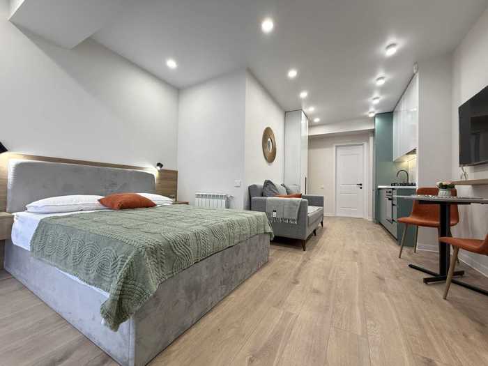 🏡 For sale in Didube, in the newly built best building, modernly renovated, uninhabited 👉 35 square meters, one room apartment with a sunny balcony. With central heating, furnished and equipped with appliances💥 premium quality renovation. 🏢 The building is finished, equipped with two elevators, all communications are functioning. 24/7 Video surveillance, coded entrance. The complex includes a large recreational area, sports and children's playgrounds. 🔑 The apartment can be used immediately upon purchase. Ideal for living as well as for renting. Clean and orderly status in the public registry. ⛺️ Floor: 6th floor / 15 floors. 🏡 Address: Tbilisi, D. Tavdadebuli Street 40