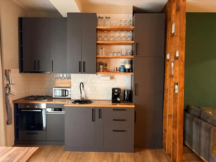 The apartment is for sale with furniture and appliances, as you can see in the photos, except for the television, bed, and washing machine.