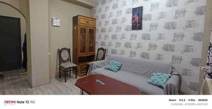 For rent, a cozy 2-room apartment behind the Tserebeli Metro. With a secure entrance, adequate neighborhood, you will find a cozy, bright living room, separate kitchen, isolated bedroom with natural light, and a comfortable balcony. With advance payment of the first and last month.
