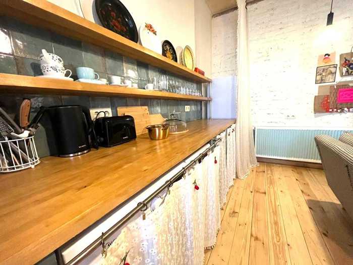 A Unique Living Space Hidden in the Urban Courtyard Atmosphere of One of Tbilisi’s Most Colorful Neighborhoods – Chughureti, on Mose Toidze Street This 70 sq.m. apartment is more than just a comfortable living space — it's a distinctive aesthetic experience where the spirit of old Tbilisi harmoniously blends with modern living. Architecture & Layout The apartment is located on the second floor of a historic urban courtyard. A restored staircase, steeped in the breath of time, leads you to a tastefully designed, cozy, and authentic home. The property includes: ✔ Two bedrooms – bright and cozy rooms, ideal for both residential living and tourist rental. ✔ Spacious studio-style living room – an open-plan space that combines the living area and kitchen, merging modern comfort with vintage charm. ✔ Hall and enclosed balcony (shushabandi) – flooded with natural light, creating a serene atmosphere and enhancing the sense of openness. ✔ Unified bathroom – minimalist yet functional and elegantly designed. Unique Vintage Details Throughout the apartment, you’ll discover thoughtfully integrated vintage elements, each repurposed with artistic flair: 🔹 Antique telephone – a decorative piece that adds charm and warmth. 🔹 Sewing machine – a unique part of the interior that evokes a nostalgic aesthetic. 🔹 Refrigerator door – creatively used as a design element, adding to the uniqueness of the space. 🔹 Baby crib – transformed into an artistic interior feature, offering an unexpected and delightful impression to visitors. Renovation with Soul The apartment has been recently renovated to preserve its historic character while incorporating modern comfort. It’s a place where old Tbilisi architecture and contemporary design vision come together to create a truly one-of-a-kind living environment. Prime Location This property is situated in one of Tbilisi’s most vibrant and tourist-friendly districts. Just a few steps away, you’ll find: 📍 The Atoneli Residence 📍 Baratashvili Bridge 📍 Public transportation stops