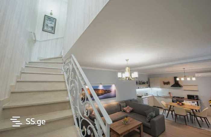 For rent in Chugureti Private house with a yard and garden Bright private house in an ideal secluded place: on the first floor a spacious living room, equipped kitchen, bathroom, yard, and garden. On the second floor 2 bedrooms and a bright sunny balcony. Very quiet and convenient location in the city center, near all shops on a beautiful historical street. Pets are allowed Available for long-term rent Price 1000 USD