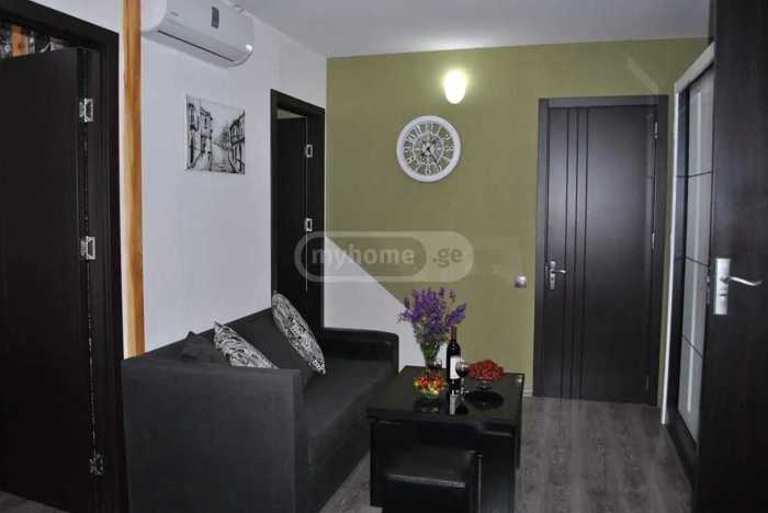 For rent: a bright, cozy 2-room apartment in Chughureti. The apartment is equipped with all necessary household appliances, furniture, a TV, and air conditioning. You will find 2 isolated bedrooms and a cozy studio-type living room. Payment in advance for the first and last month.