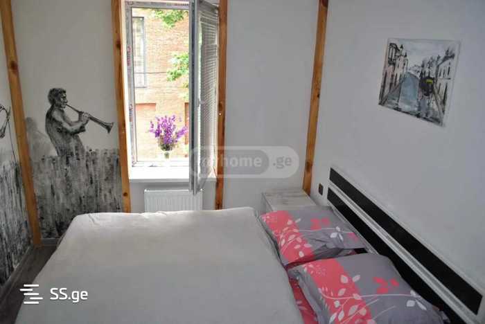 A three-room apartment is for rent in the old district of Tbilisi, on Vorontsov Square. The entrance is from the staircase, the staircase is locked, equipped with cameras, and is accessed by a chip. There are markets, pharmacies, and cafes close to the house. It is a 10-minute drive to Freedom Square.