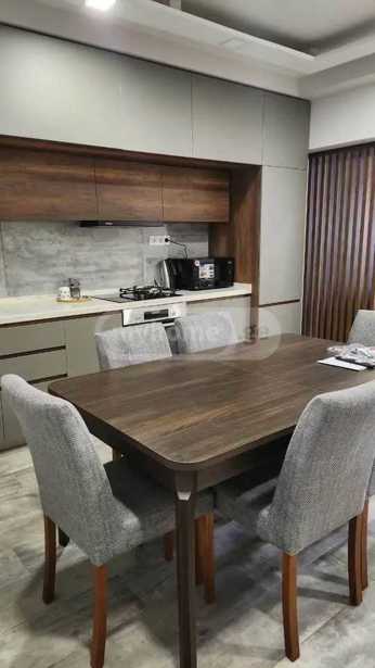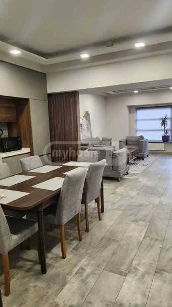 For rent is a three-room super apartment in front of the Marjanishvili metro in a new building, furnished with appliances for $600. It has two bathrooms, air conditioning, and is located 100 meters from the metro. A super apartment with a leather set, bar stools, air conditioning, and a plasma TV.