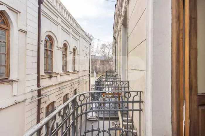 For sale, in the city center, in one of the best locations, in a historic district, in one of the best buildings located at 2 Uznadze Street, on the 6th floor a duplex-type two-story apartment of 253 sq.m with panoramic views. Euro renovation. The apartment has four bedrooms, a large living room, kitchen, two bathrooms, two fireplaces (in perfect condition), two verandas, and one balcony, four storage rooms. The duplex is bright and airy. Furnished with appliances, built-in wardrobes, and kitchen. There are beautiful views of Old Tbilisi from the balcony and verandas on all sides. Iron door, locked entrance, parking space in the yard. The parking system is organized with a barrier. The apartment has a classic, unique renovation and the highest quality construction materials have been used. The building is a cultural heritage monument.