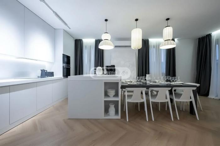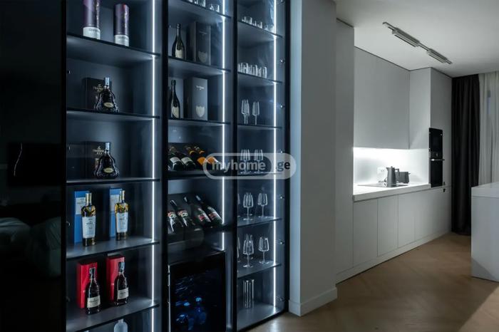 We present a unique apartment in Tbilisi Gardens—a premium-class living space with modern design, top-quality finishes, and panoramic views of the city. The apartment is an ideal choice for those who appreciate comfort, an eco-friendly environment, and refined style. Among the advantages of Tbilisi Gardens is its eco-friendly and prestigious location, which is ideal for living. The building is constructed according to international safety standards and offers panoramic views of the mountains and the city. The complex includes 21,000 m² of landscaped areas, a central park, and modern infrastructural facilities. It also features a 25-meter swimming pool, a fitness center, and a playground for children. Security is ensured by a 24/7 guard service and a video surveillance system. The apartment's advantages include premium finishes made of high-quality materials and modern design, fully compliant with international standards. The interior is furnished with premium furniture from Motif and Naterial, Italian Flos chandeliers, and modern electrical systems from Legrand. The elegant decor by Jonathan Adler adds a special refinement to the interior. The apartment is fully equipped with Bosch appliances, including air conditioners, refrigerators, ovens, microwaves, gas stoves, washing and drying machines, an extractor, and a wine fridge. The kitchen is arranged professionally and consists of kitchen utensils from Zwilling and Alessi, as well as a coffee machine from Delonghi. For living comfort, the apartment is equipped with a Harman Kardon audio system that provides a high-quality musical experience, while part of the interior also represents a mini-collection of premium beverages.