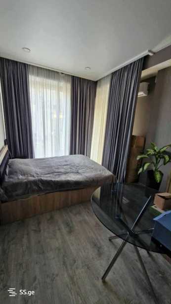 An apartment is available for rent in Vake with a veranda, on Gabashvili Street, 2 rooms, 90 sq m, new building close to Vake Park, with central heating, air conditioning, furniture, and appliances. The price is 700$.