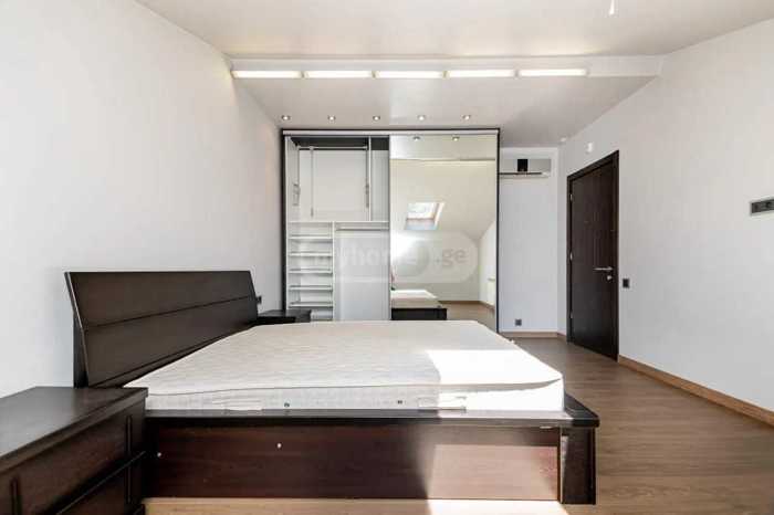 An apartment is for rent in a newly built, non-standard project. The apartment is located on the fourth floor of a four-story building and covers an area of 140 sq.m. It consists of 3 rooms, including 2 bedrooms, which ensures a comfortable and cozy living environment. The apartment has two balconies, providing additional space and light. The new environment and modern design are ideal for those who appreciate peace and quality. The apartment is unoccupied and ready for new tenants.