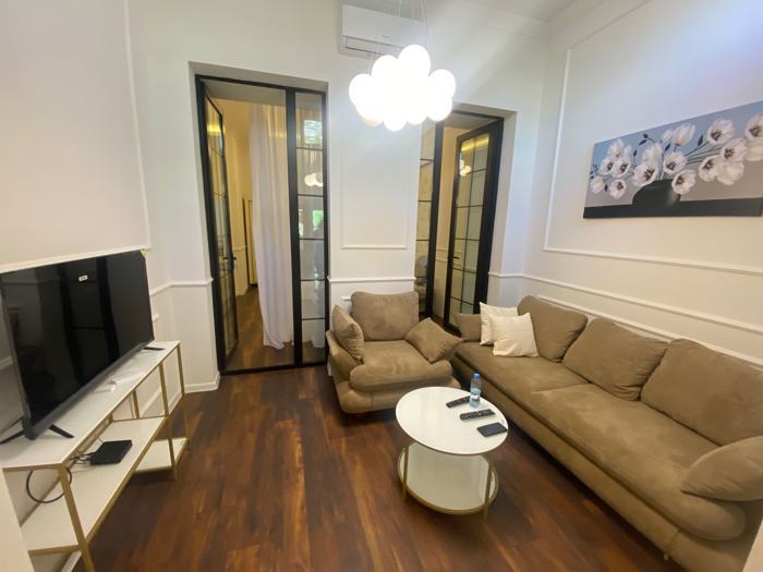 Apartment for rent on Janashia Street in Vera, 2 rooms, 60 sq.m, with central heating and air conditioning, with a balcony, close to the Philharmonic and Rustaveli metro, with new furniture and appliances, price 700$