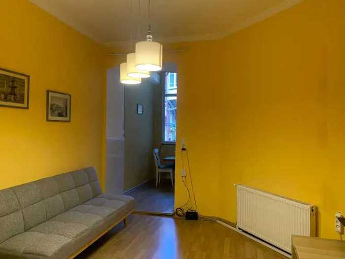 Apartment for sale near the Opera in the Mtatsminda district, in an Italian courtyard. On the first floor, 28 sq m, studio-type, high ceiling, with a balcony, newly renovated, central heating, isolated, furnished and equipped. Currently rented out on Booking.