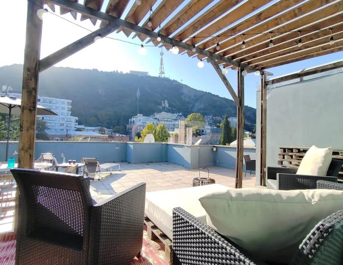 Duplex apartment for rent in Mtatsminda, Niaghvari Street, in the so-called Diplomats Building, - 120 sq m; Veranda 130 sq m with beautiful views of Old Tbilisi - Floor 7 (total 7 floors) - 2 bedrooms, 2 bathrooms - The building has security - Includes a closed garage - The apartment has all the necessary things for living. With two months advance payment