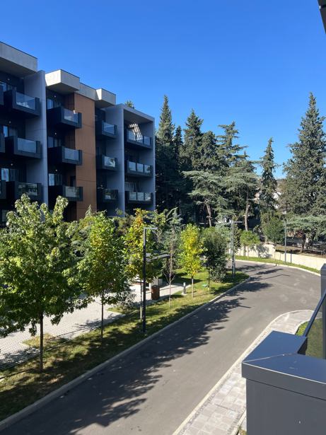 Apartment for rent in Tbilisi Hill Golf club, a 5-minute drive from Krtsanisi, in a newly built building. The apartment is uninhabited, with three bedrooms, two bathrooms, new furniture and appliances, and a large veranda with magnificent views. The complex offers 24-hour security, parking spaces, clean air and tranquility, a playground for children, and running trails.