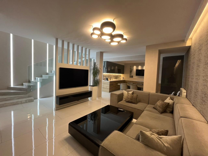 (Auto Translate!) A 4-room duplex is for sale in Kakali, on Irakli Uchaneishvili Street, in a quiet neighborhood, with fresh air and beautiful views of the entire city, 510 minutes' drive from Baggi. It has its own yard, terrace, balconies, 3 bedrooms (1 King Size, 2 Queen Size beds), 3 bathrooms (1 shower, 1 jacuzzi), pantry, equipped with all necessary appliances and furniture: dishes, induction surface, built-in oven, microwave oven , washer, dryer, dishwasher, 4 smart TVs, piano, WiFi and more. Also, a garage for 2 cars.
