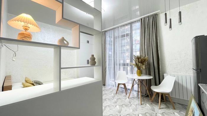 🇬🇪 NBG PANORAMA 📍2nd lane Angisa 10 For sale zoned studio 10 minutes from the sea. The apartment has new renovations. The kitchen is fully equipped. Residential complex with a reception, parking lot, children's playground. The complex is gasified. ✅There is a grocery store in the house, and nearby cafes, restaurants, schools, Kachinsky Park, children's playgrounds, and fitness clubs. 🔹studio 🔹25m2 🔹3/26 floor 💵48000