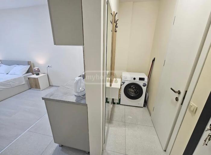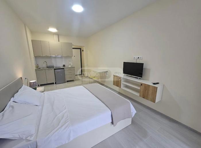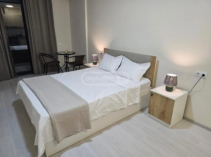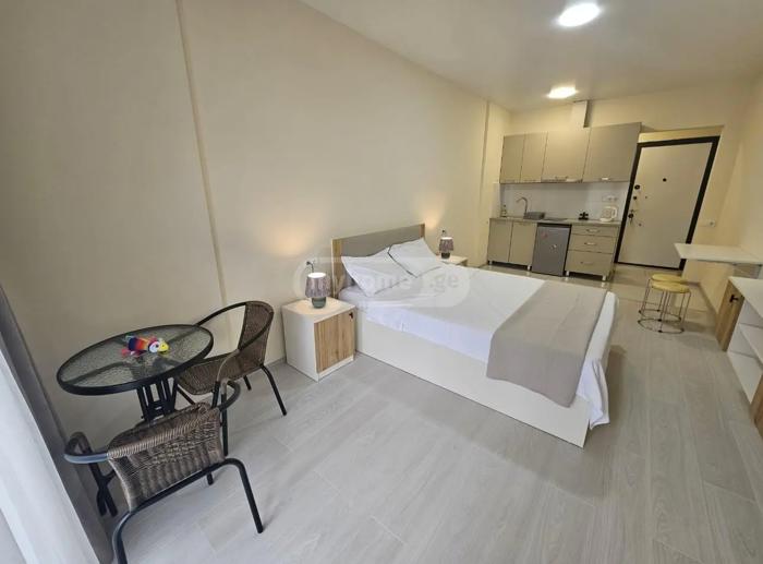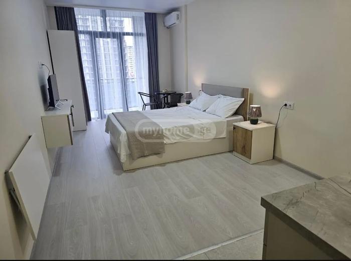 A studio-type apartment is for rent in a newly built residential complex. Completely new, uninhabited, with modern renovation, fully furnished with quality furniture and household appliances. With a swimming pool. The apartment is located 300 meters from the beach. Shopping center near Metro City. Monthly rental is also possible until the end of May. 800₾