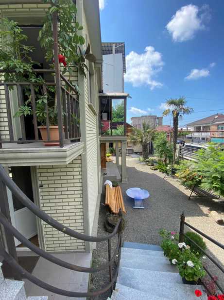 For sale a private house with a yard of 1000 sq.m. There are 3 buildings on the territory: a main residential house of 200 sq.m, a house for tourists (commercial) of 150 sq.m, and a garage of 80 sq.m. The house intended for tourists has 3 bedrooms with separate entrances, kitchens, bathrooms, and a living room. Phone: 593 45 42 68 or 595 78 24 29