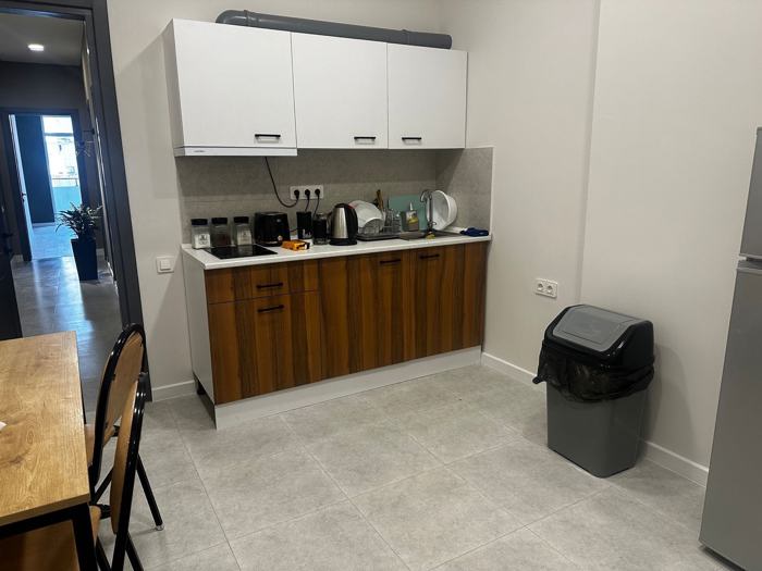 Office space for sale or rent in Batumi, on Pushkin Street. The office has a private entrance and its own elevator. The office is multifunctional, with both work rooms and space for conferences and training for up to 50 people. The office has a unique feature, in addition to the office part, there are 3 hotel-like rooms (fully compliant with hotel standards: individual bathrooms, refrigerator, TV, fully furnished) which can also be converted into office spaces if desired. The office is situated on the second floor and occupies it entirely. The office is being sold by a legal entity and the given price includes VAT.