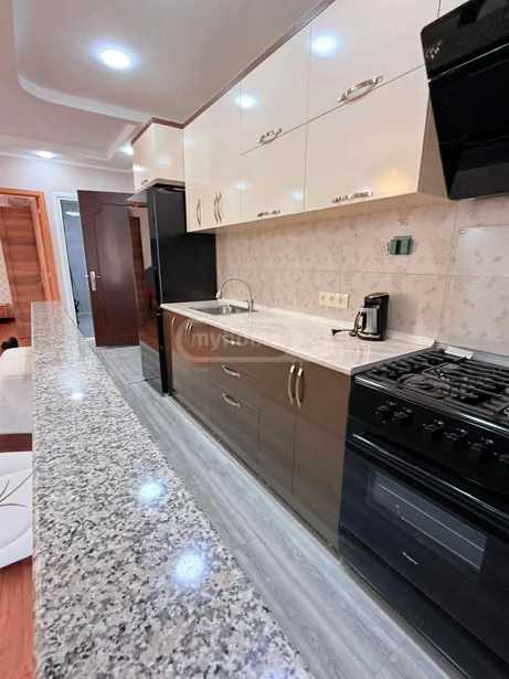 2+1 apartment for rent at 111 Gorgiladze Street, 14th floor, modern renovation, 75 m², bright bedrooms, central heating, oven, large balcony, mountain view, swimming pool and fitness room in the building, 200 meters from the sea, price $850 per year with no increase during the season.