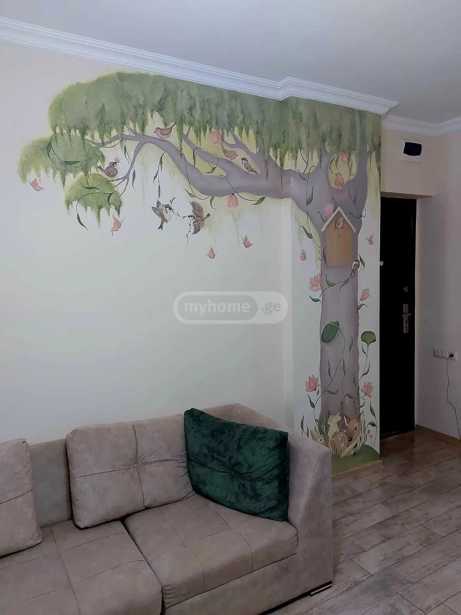 For rent annually at 8 Mamuladzis street, in the end of Inasaridze, the apartment has 1 bedroom, furnished with furniture and appliances.