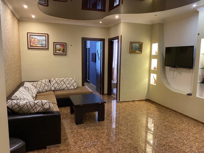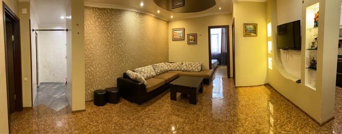 3-room apartment for rent on Tazari Street, 22 (5 minutes walk from the sea) with panoramic view, 14th floor, central heating Layout: 2 bedrooms, living room + kitchen fully equipped with furniture and appliances: oven microwave oven washing machine refrigerator, air conditioner, TV all dishes and linens Area: 75 m² Price: $ 600 long-term rental