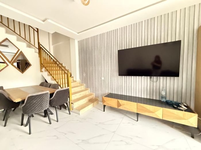 For rent: modern villa on the airport territory Area: 130 sq/m 3 bedrooms 3 bathrooms 2 living rooms 2 fully equipped kitchens 2 balconies Ideal for both living and a comfortable, peaceful environment Price: $1600 For more information, contact us via WhatsApp: +995 555 32 50 21