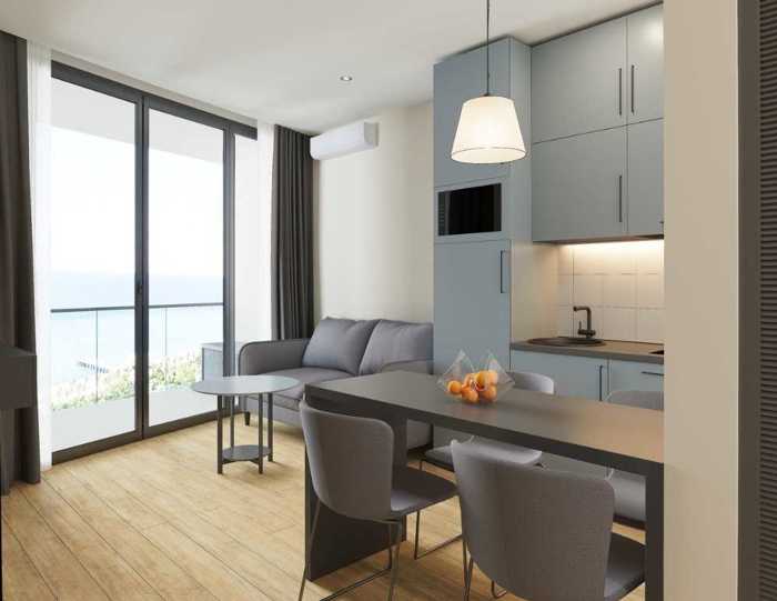 For sale, a new Nobody Live studio of 25 m2 (new furniture, appliances) 'Orbi City' new block D2 Address: J. Shartava 3, 16th floor sunny side, Heating: air conditioner, Balcony: 1, View: sea, mountains, boulevard, 43000 $